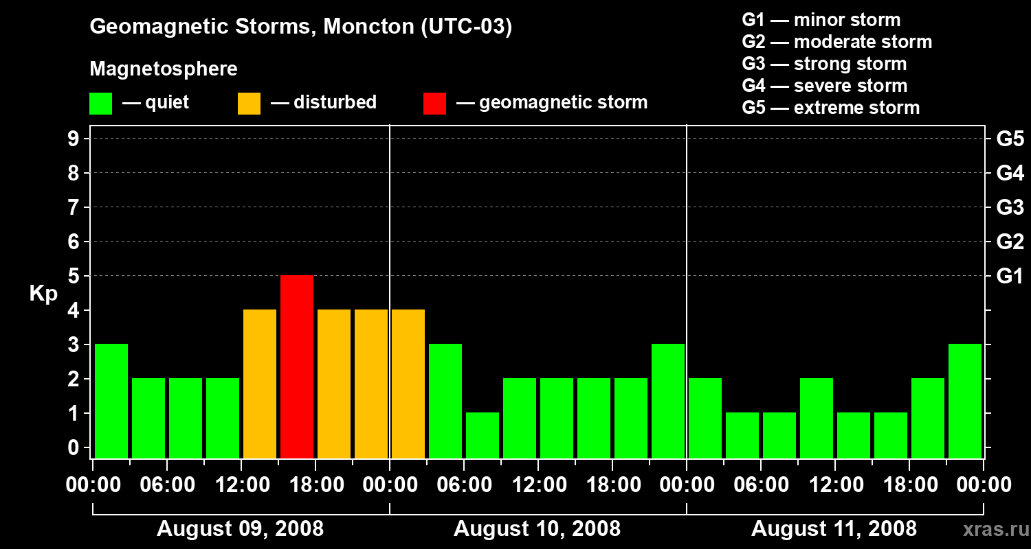 Geomagnetic storms in Moncton — Aug 11, 2008