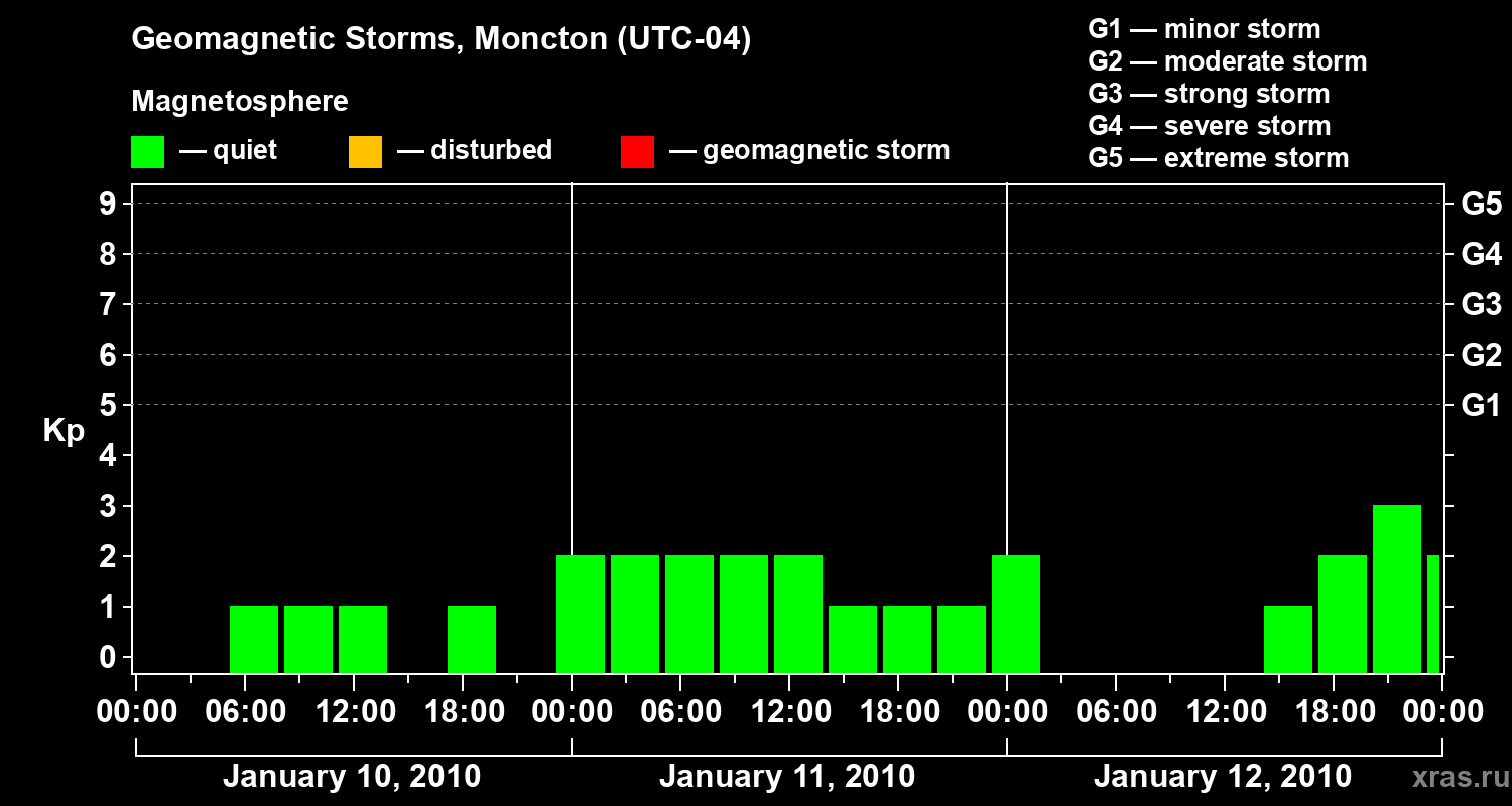 Geomagnetic storms in Moncton on Jan 12, 2010