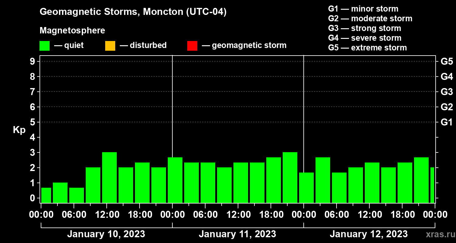 Geomagnetic storms in Moncton — Jan 12, 2023