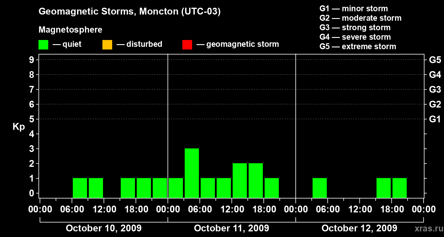 Geomagnetic storms in Moncton on Oct 12, 2009