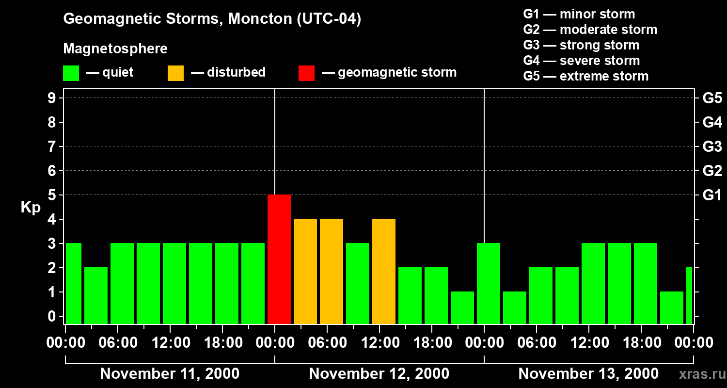Geomagnetic storms in Moncton on Nov 13, 2000