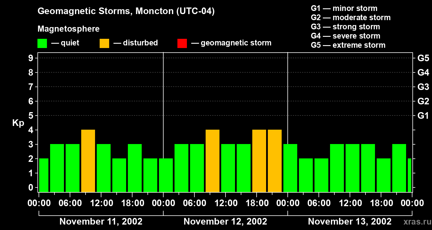 Geomagnetic storms in Moncton on Nov 13, 2002