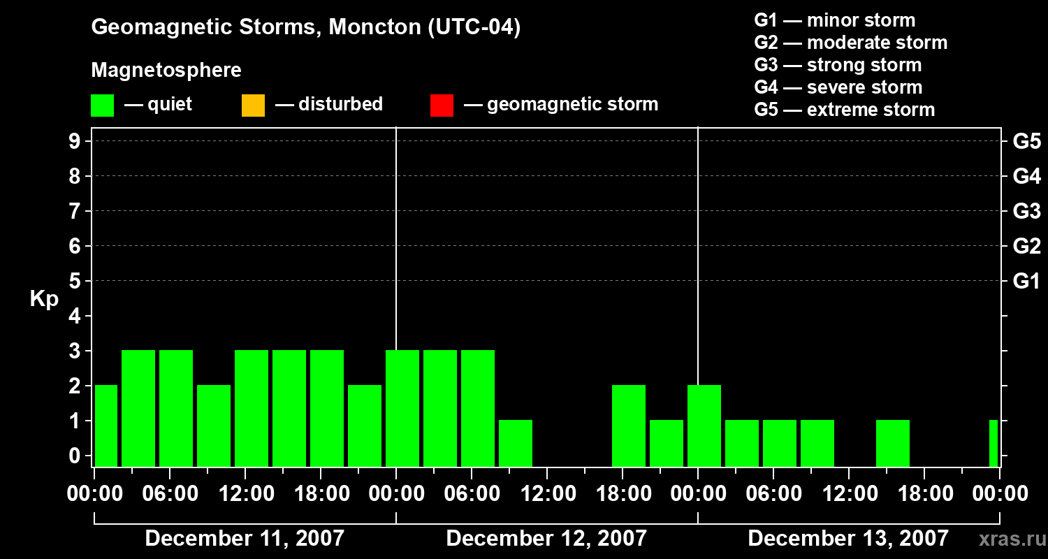 Geomagnetic storms in Moncton on Dec 13, 2007