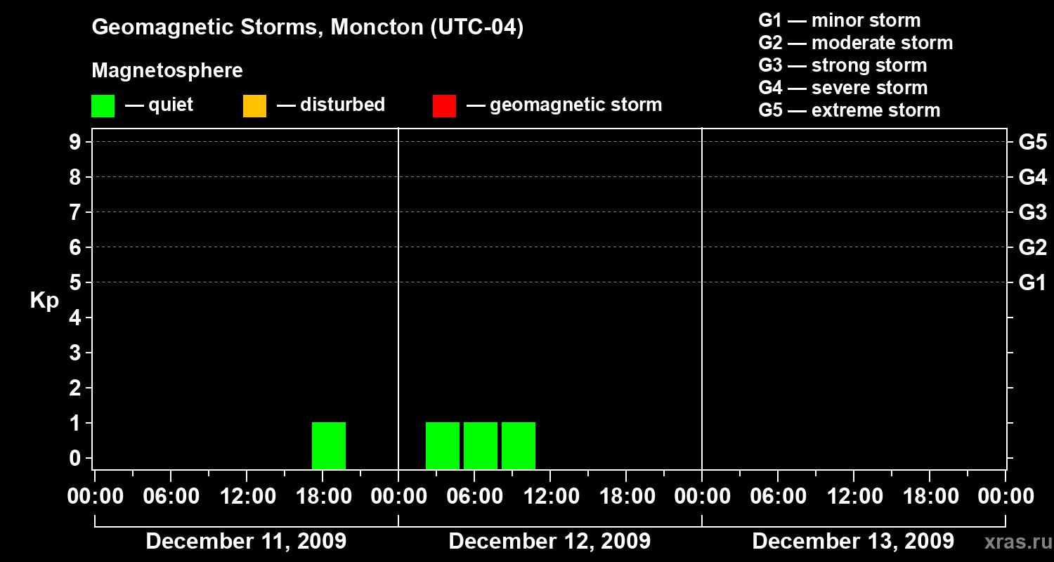 Geomagnetic storms in Moncton on Dec 13, 2009