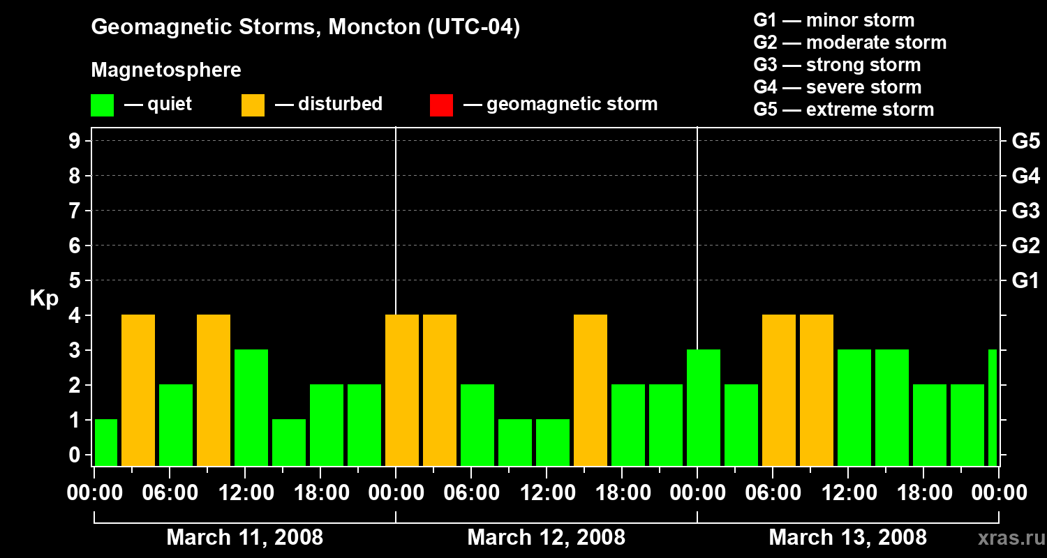 Geomagnetic storms in Moncton — Mar 13, 2008