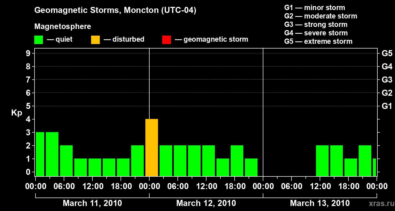 Geomagnetic storms in Moncton — Mar 13, 2010