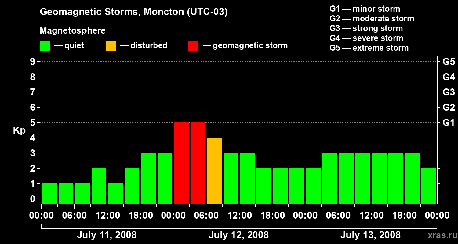 Geomagnetic storms in Moncton — Jul 13, 2008