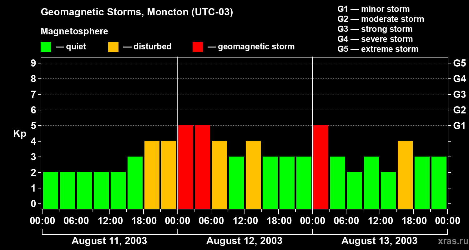 Geomagnetic storms in Moncton on Aug 13, 2003