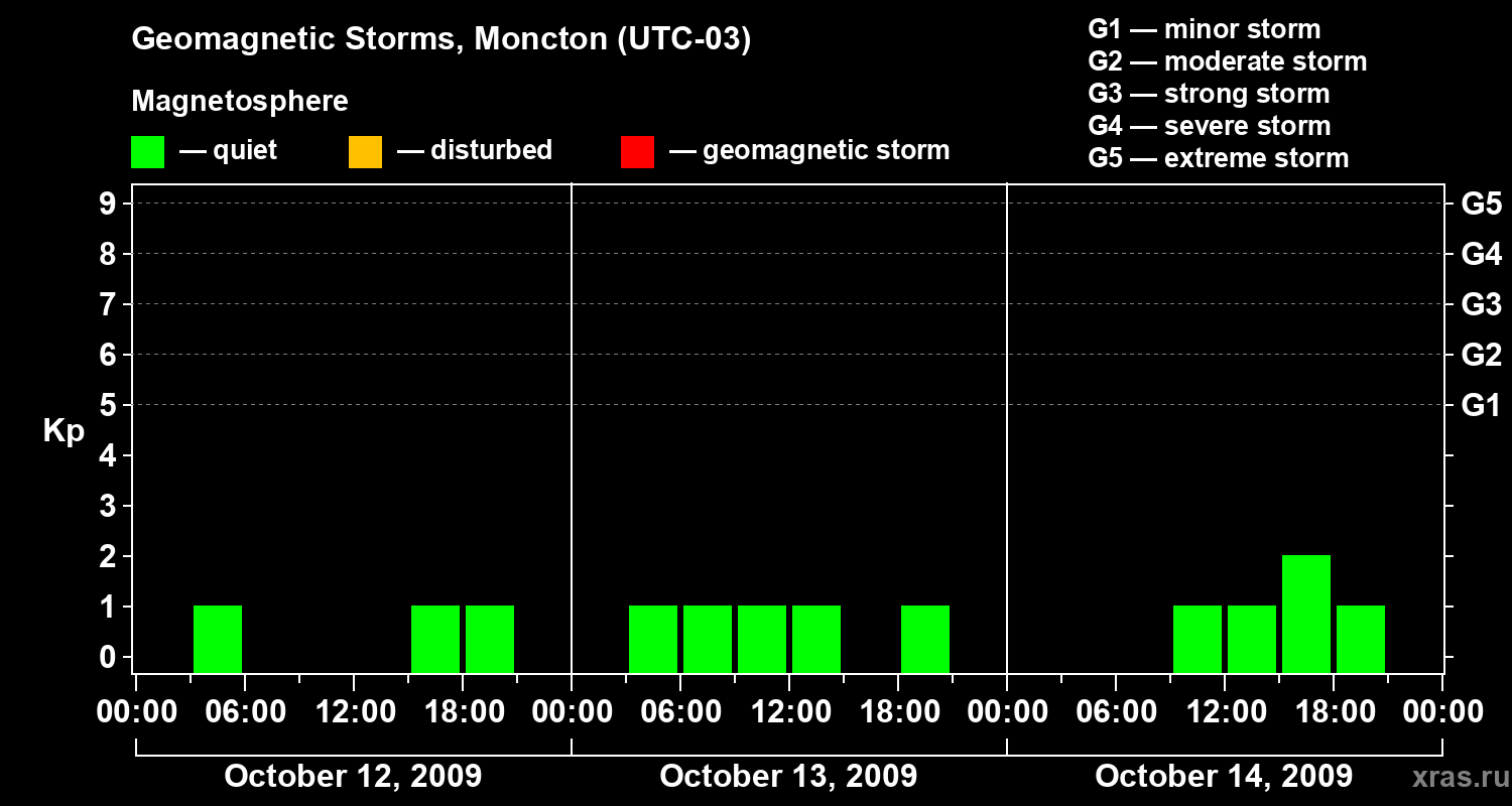 Geomagnetic storms in Moncton on Oct 14, 2009
