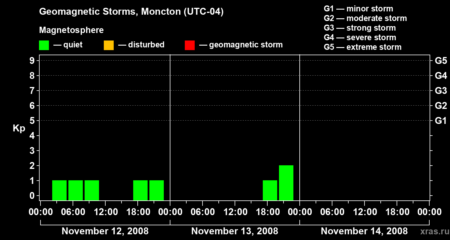 Geomagnetic storms in Moncton — Nov 14, 2008