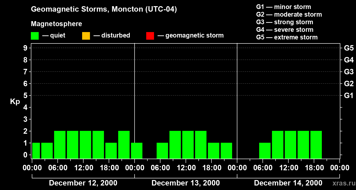 Geomagnetic storms in Moncton on Dec 14, 2000