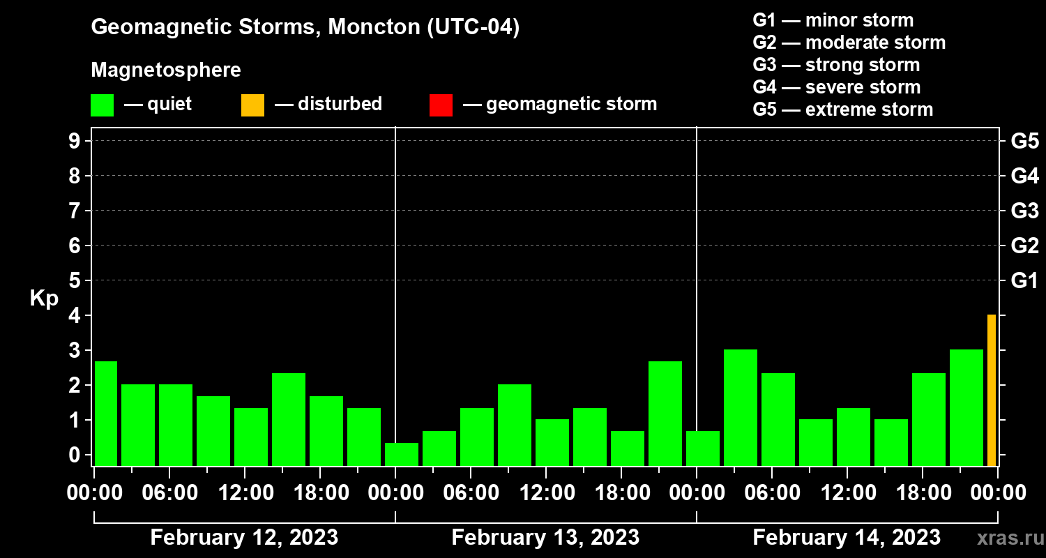 Geomagnetic storms in Moncton on Feb 14, 2023