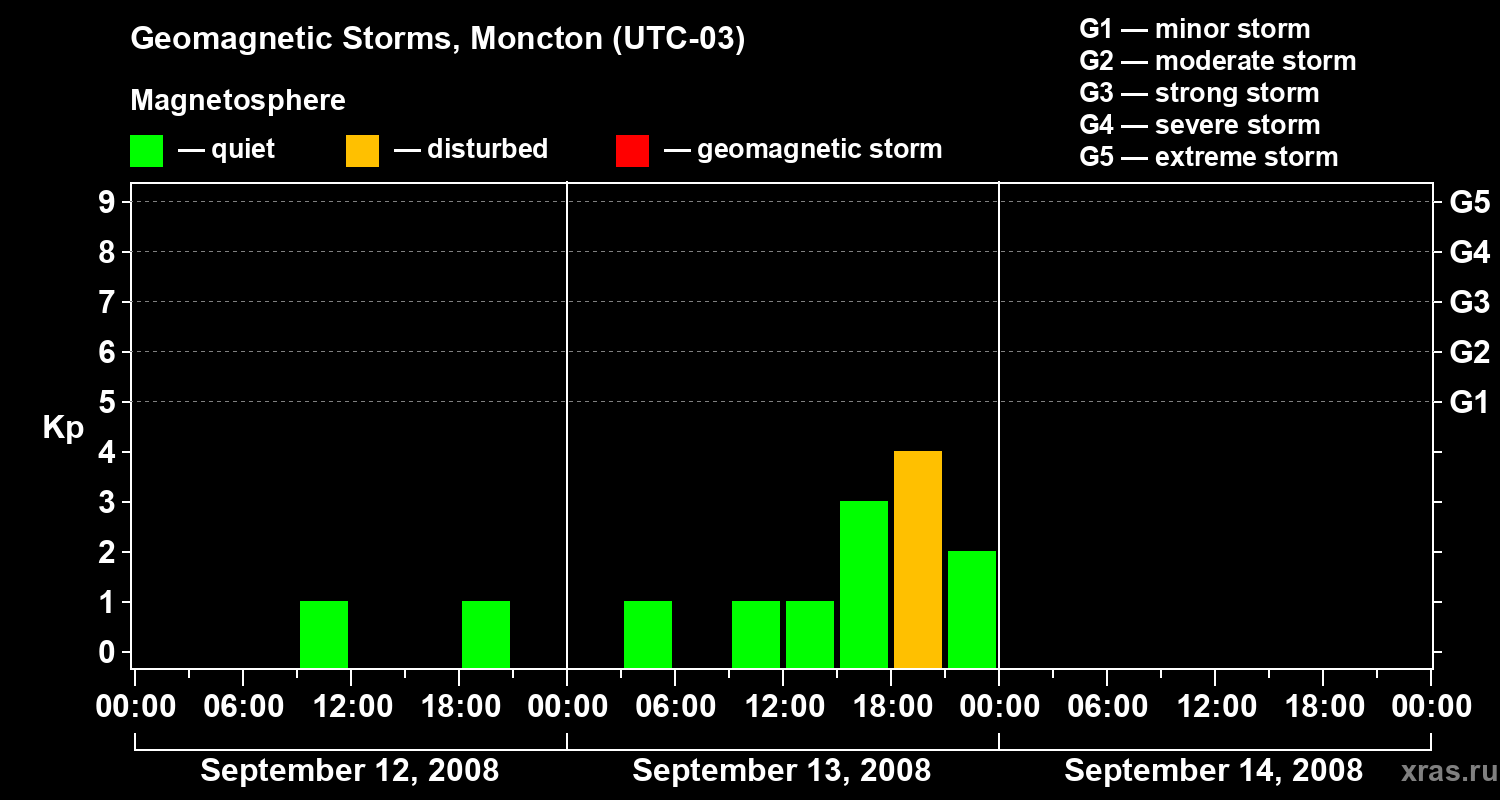 Geomagnetic storms in Moncton — Sep 14, 2008