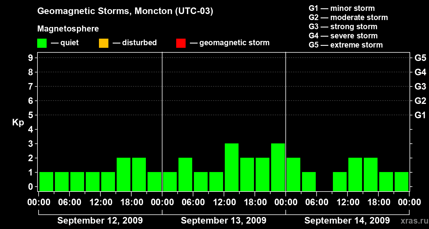 Geomagnetic storms in Moncton — Sep 14, 2009