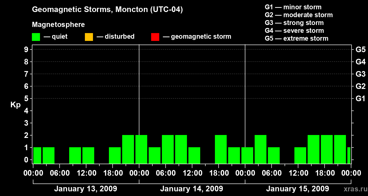 Geomagnetic storms in Moncton on Jan 15, 2009