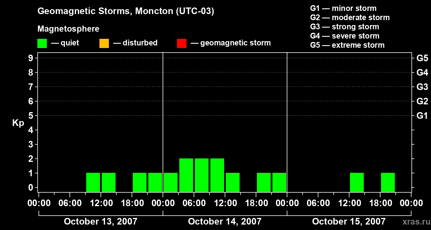 Geomagnetic storms in Moncton on Oct 15, 2007