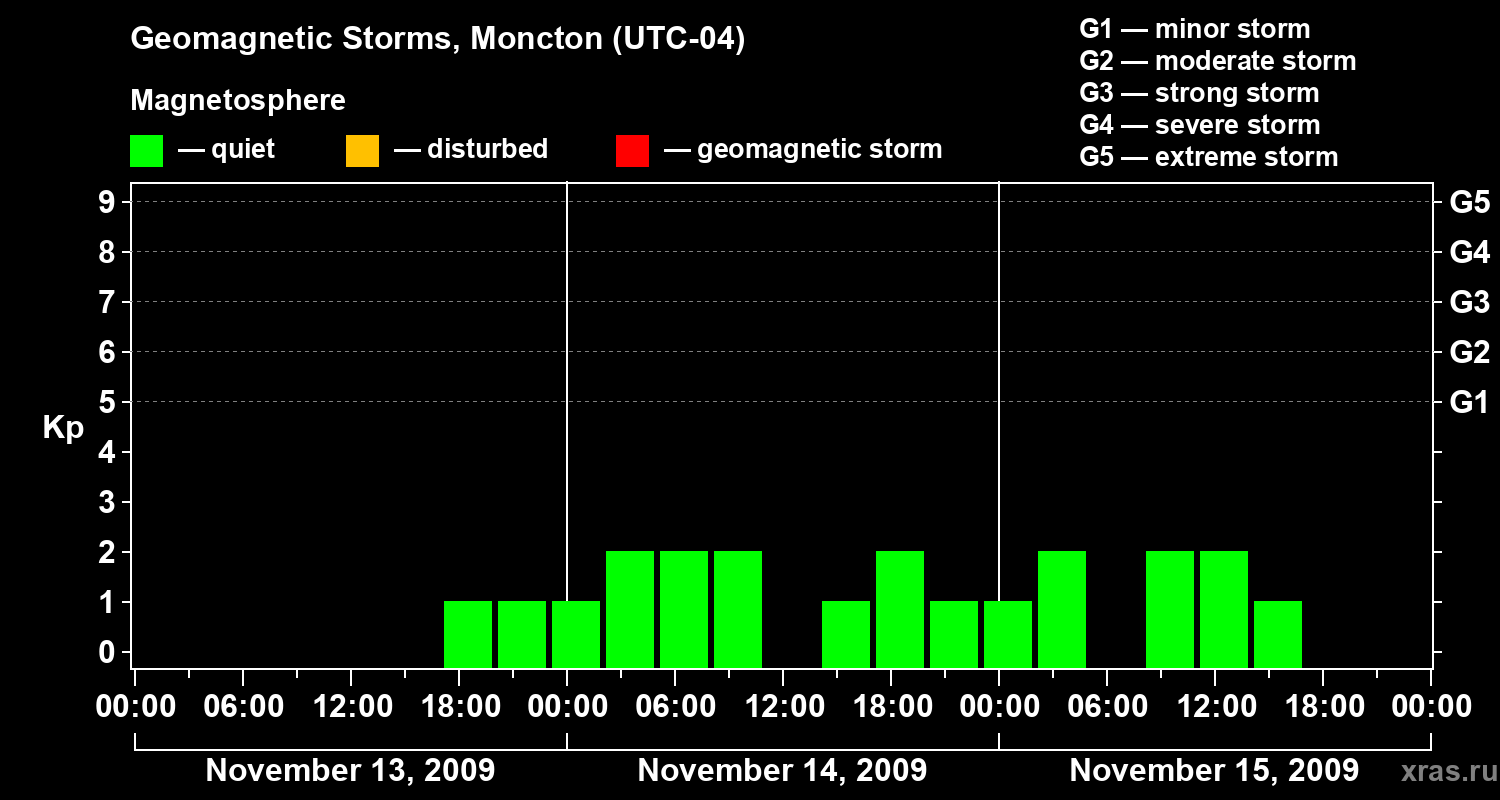 Geomagnetic storms in Moncton on Nov 15, 2009