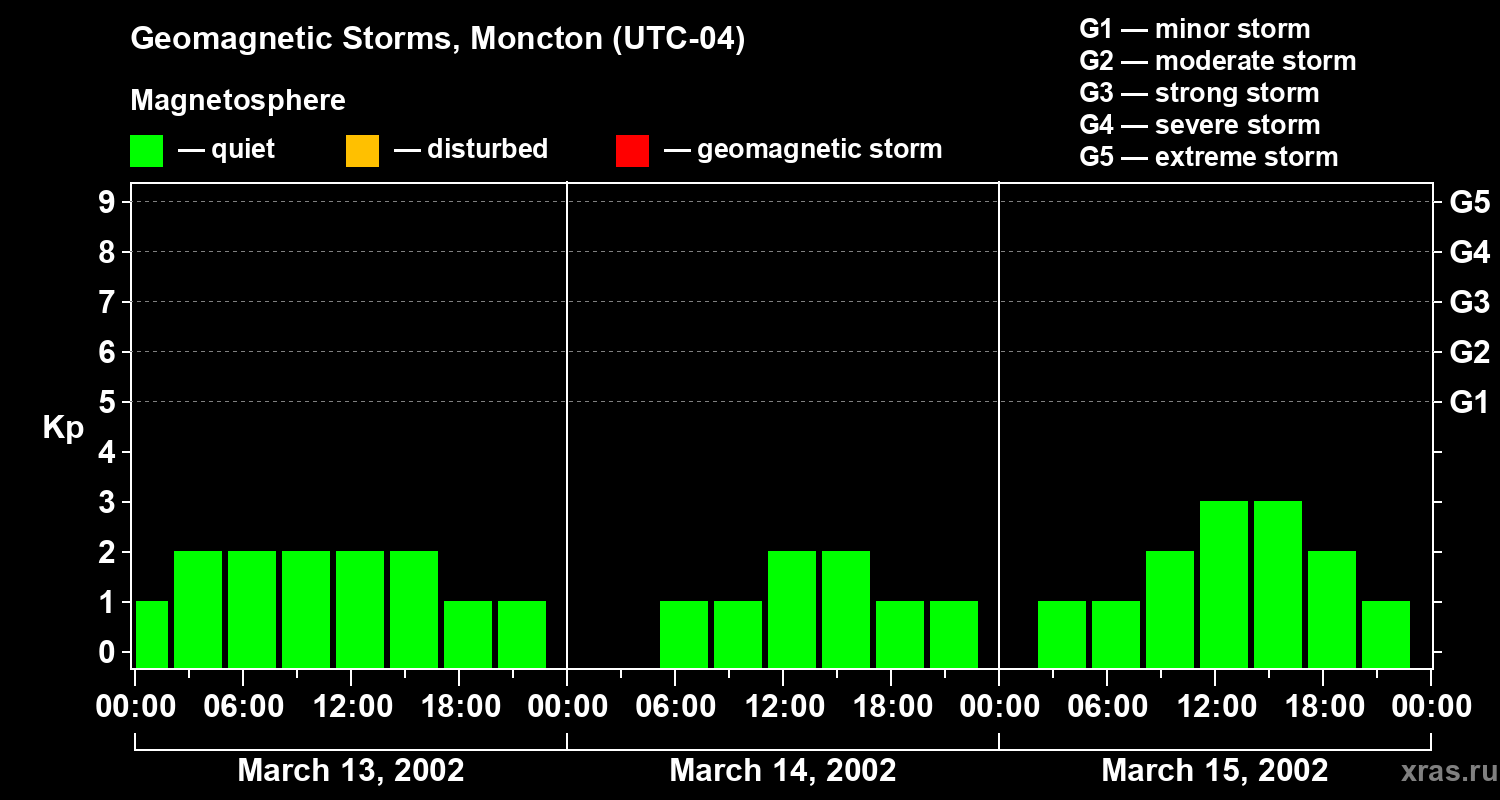 Geomagnetic storms in Moncton on Mar 15, 2002