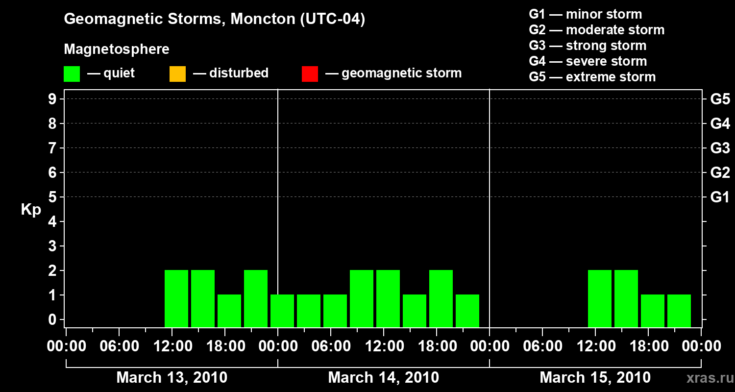Geomagnetic storms in Moncton — Mar 15, 2010