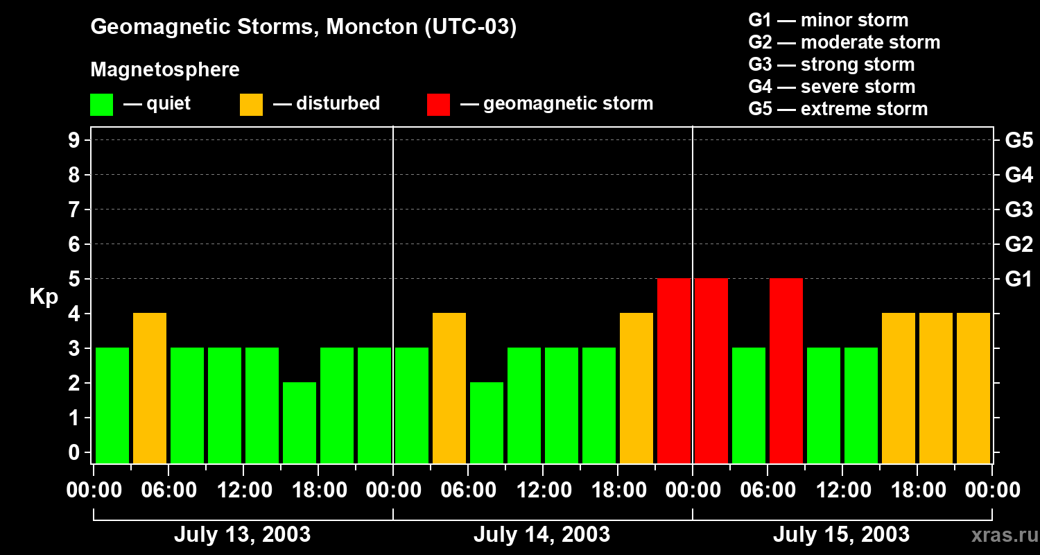Geomagnetic storms in Moncton on Jul 15, 2003