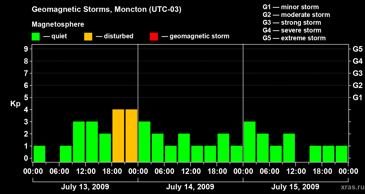 Geomagnetic storms in Moncton on Jul 15, 2009