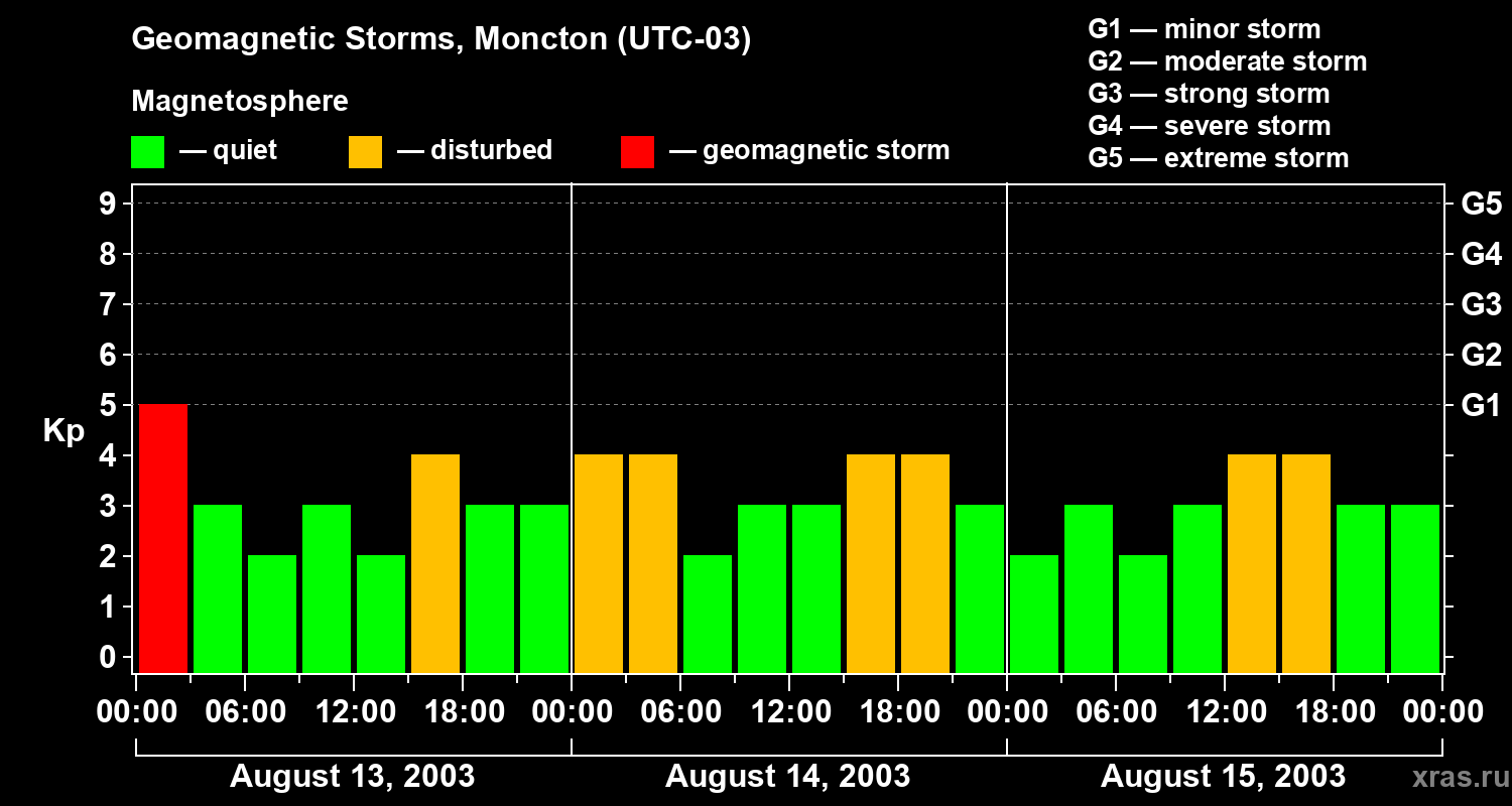 Geomagnetic storms in Moncton on Aug 15, 2003
