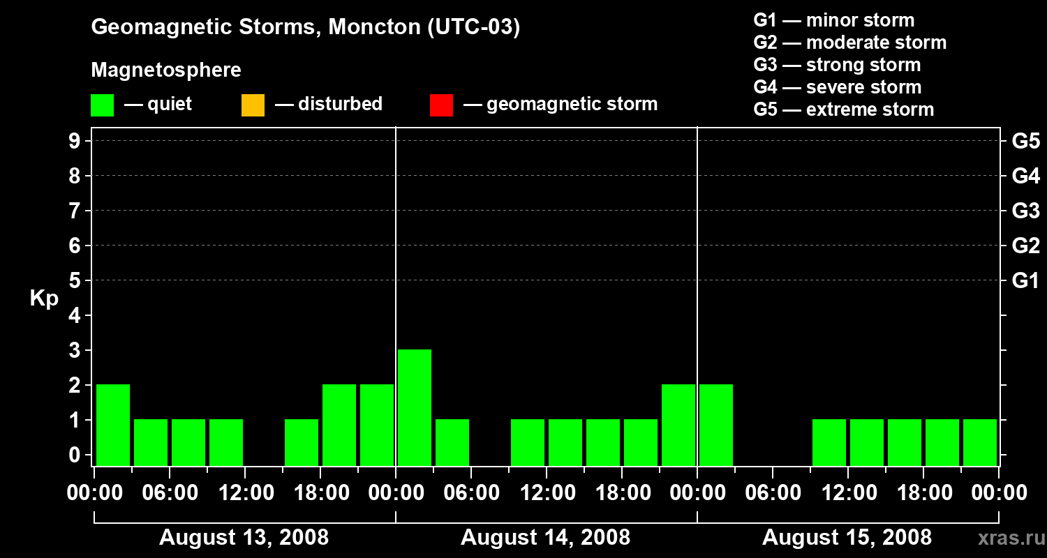 Geomagnetic storms in Moncton on Aug 15, 2008