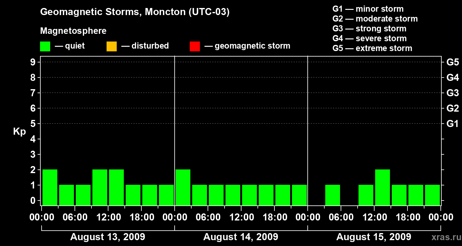 Geomagnetic storms in Moncton on Aug 15, 2009