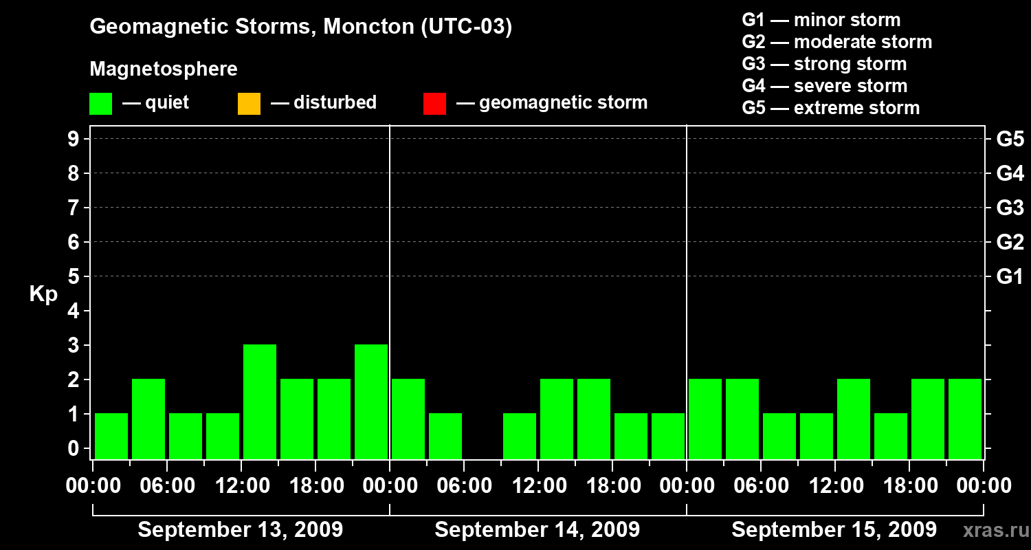 Geomagnetic storms in Moncton — Sep 15, 2009