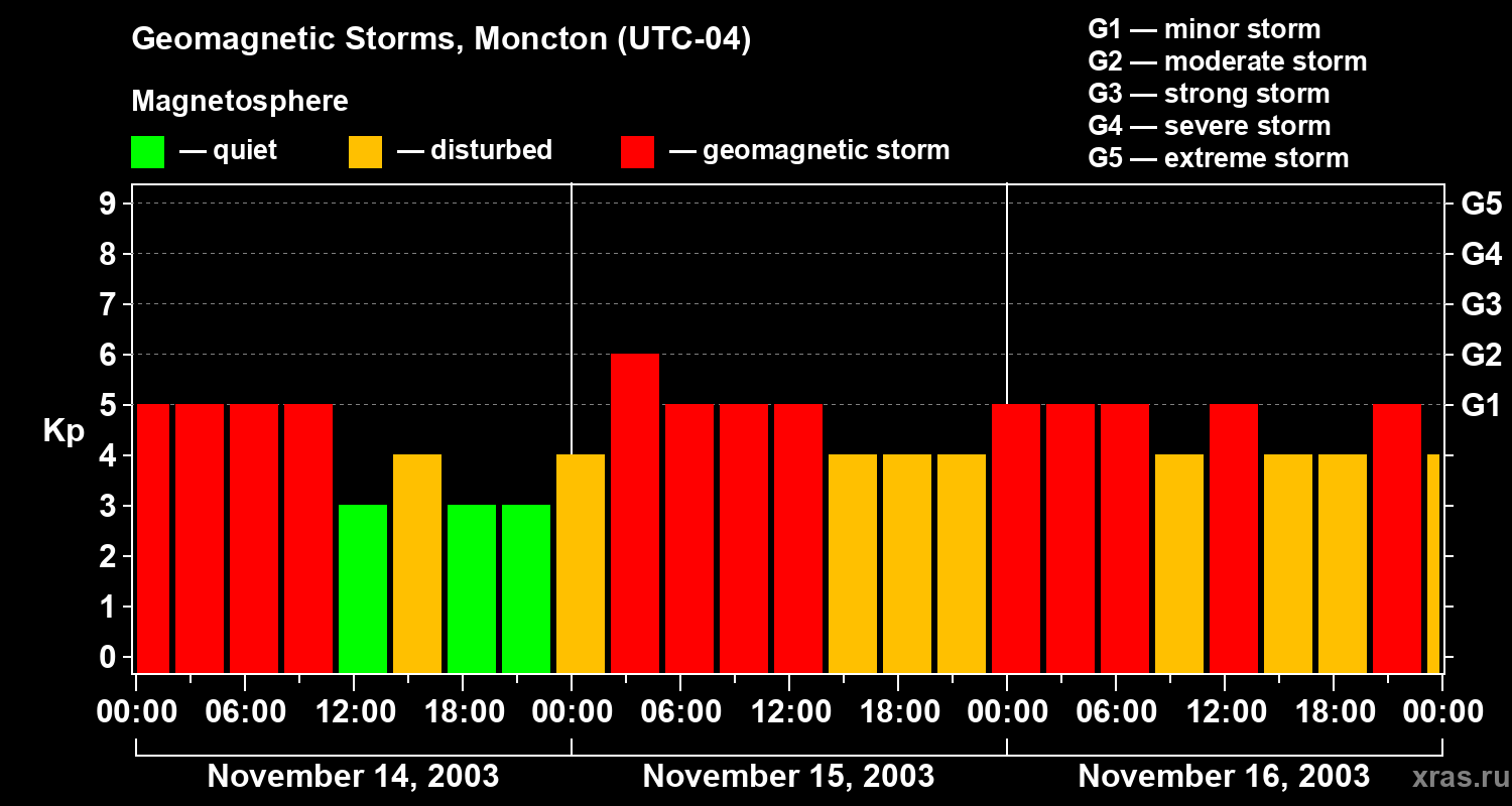 Geomagnetic storms in Moncton on Nov 16, 2003