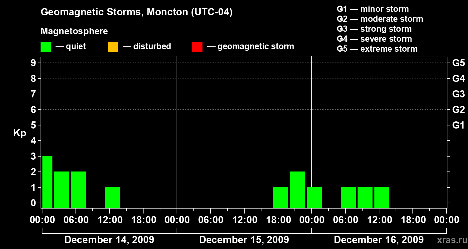 Geomagnetic storms in Moncton in December 2009