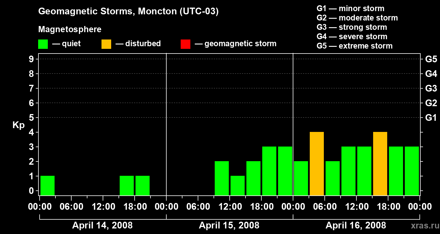 Geomagnetic storms in Moncton — Apr 16, 2008