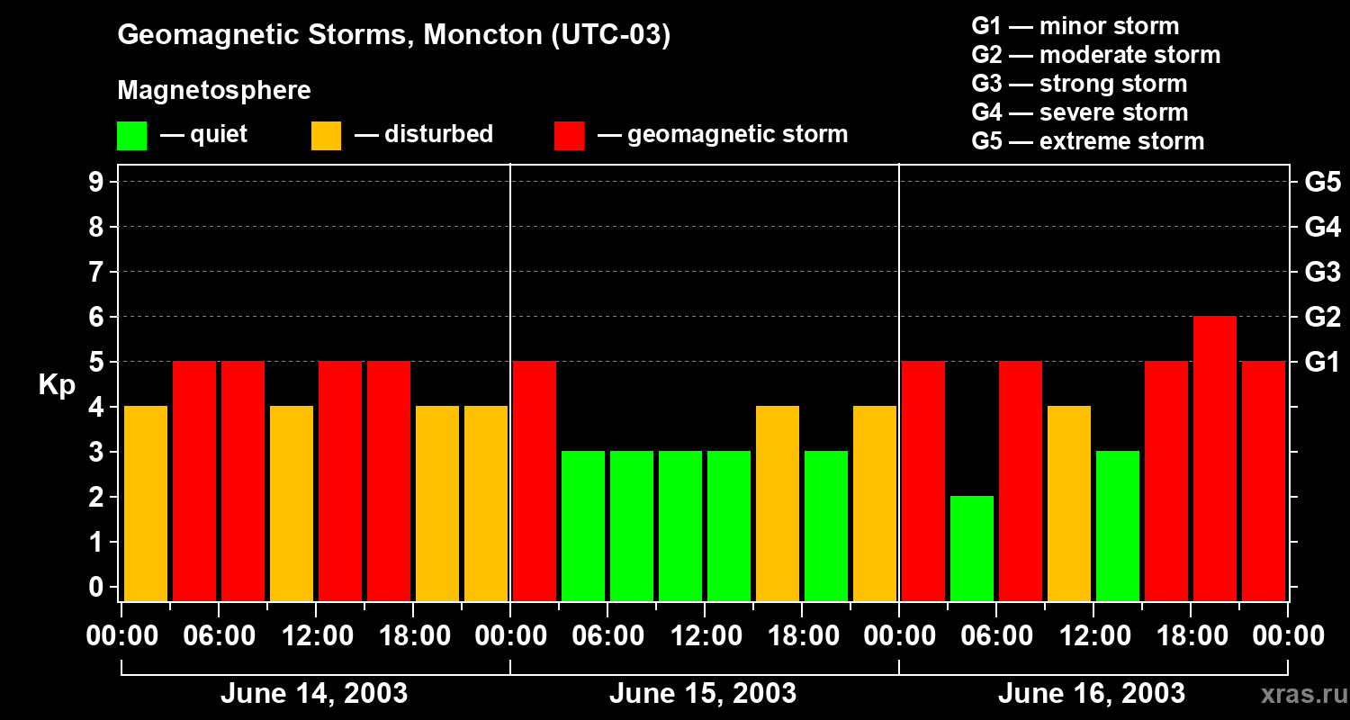 Geomagnetic storms in Moncton — Jun 16, 2003