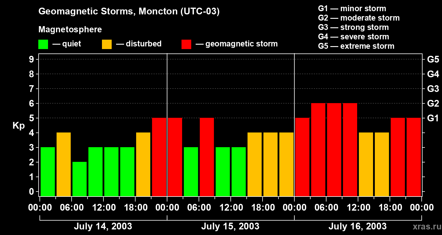 Geomagnetic storms in Moncton — Jul 16, 2003