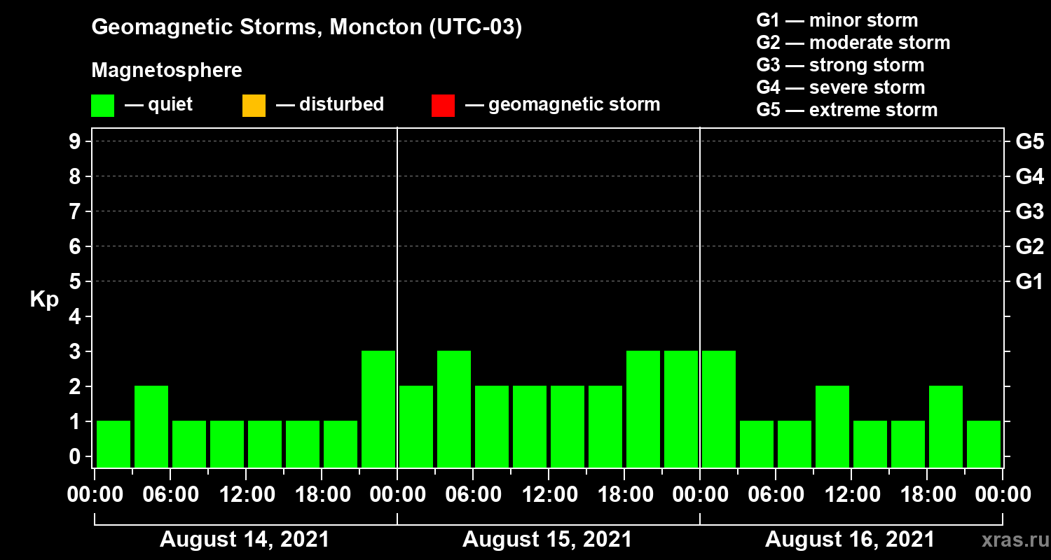 Geomagnetic storms in Moncton in August 2021