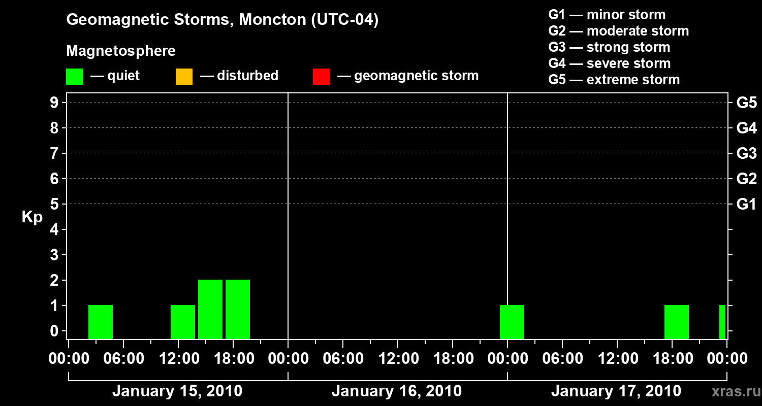 Geomagnetic storms in Moncton on Jan 17, 2010