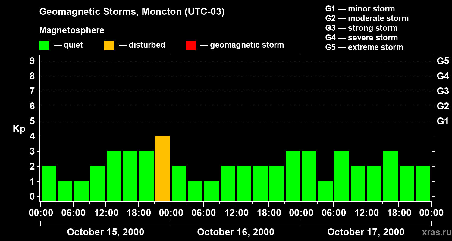 Geomagnetic storms in Moncton on Oct 17, 2000