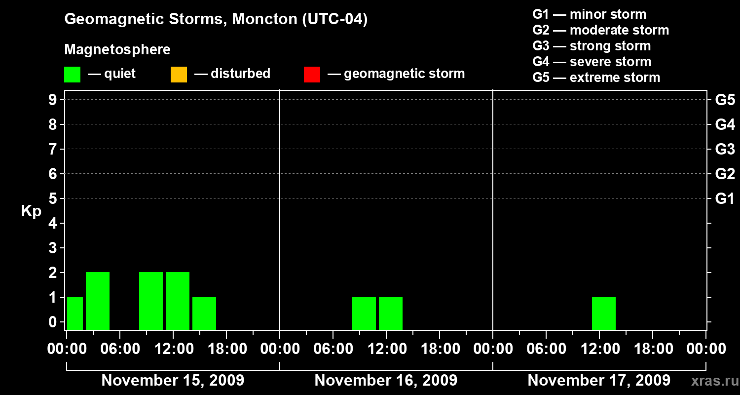 Geomagnetic storms in Moncton on Nov 17, 2009