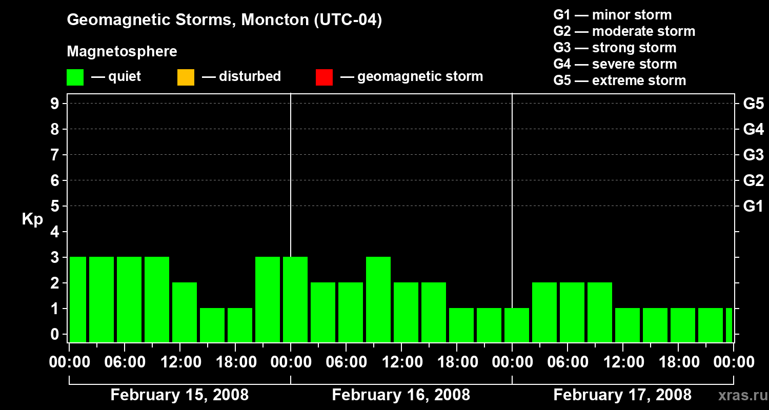 Geomagnetic storms in Moncton on Feb 17, 2008