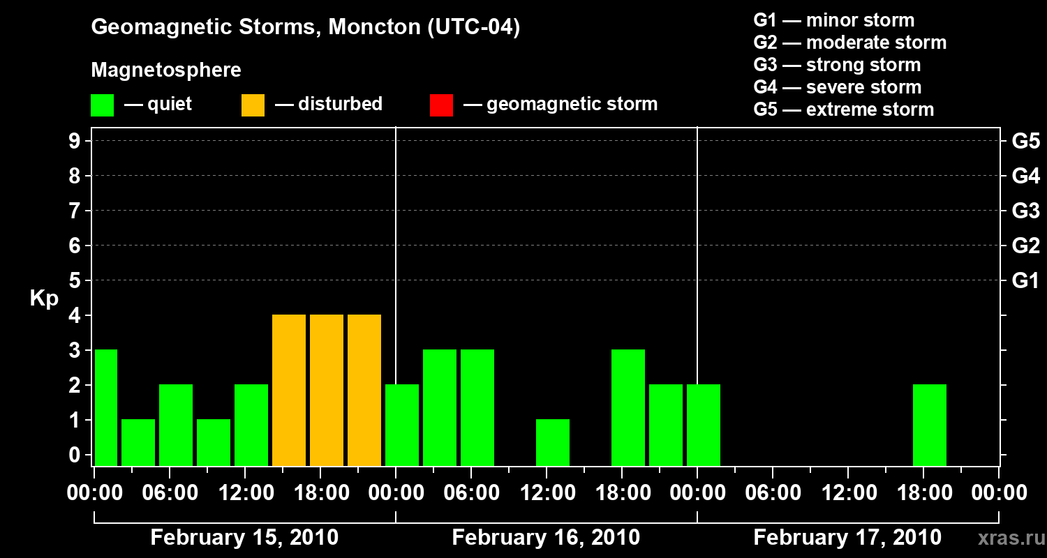 Geomagnetic storms in Moncton — Feb 17, 2010