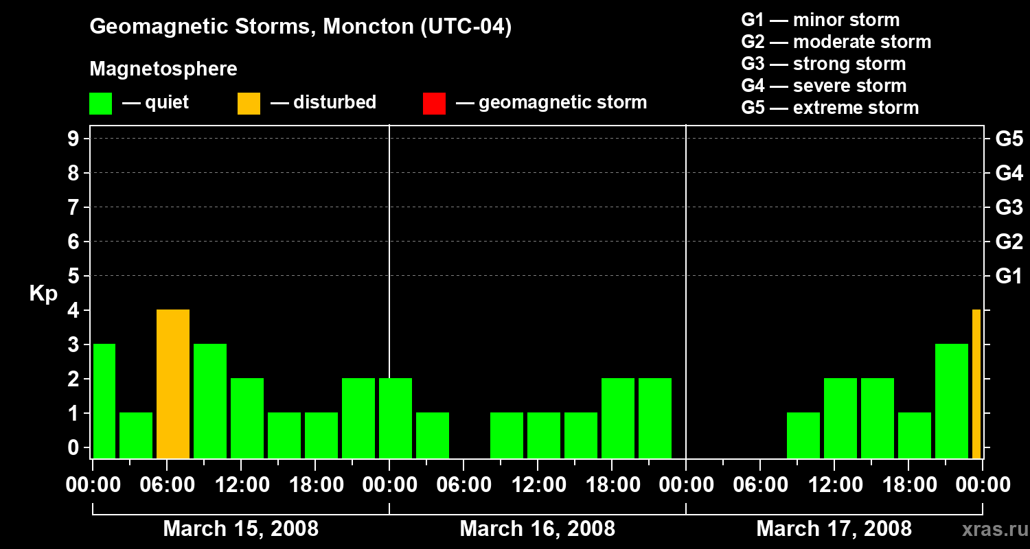 Geomagnetic storms in Moncton in March 2008