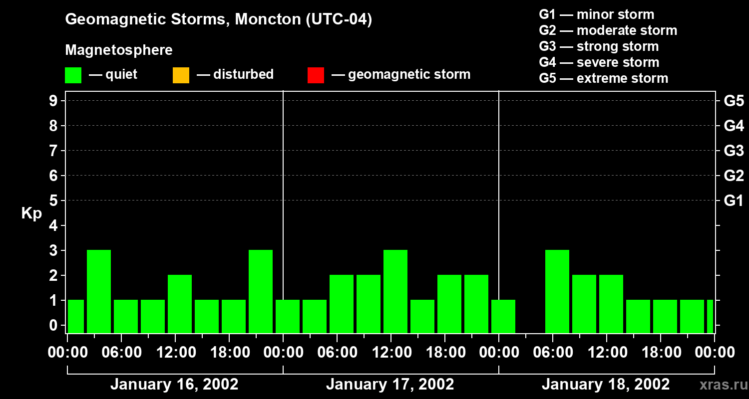 Geomagnetic storms in Moncton on Jan 18, 2002