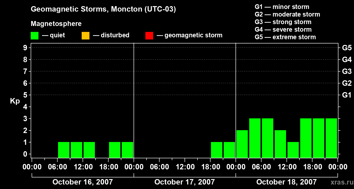 Geomagnetic storms in Moncton on Oct 18, 2007