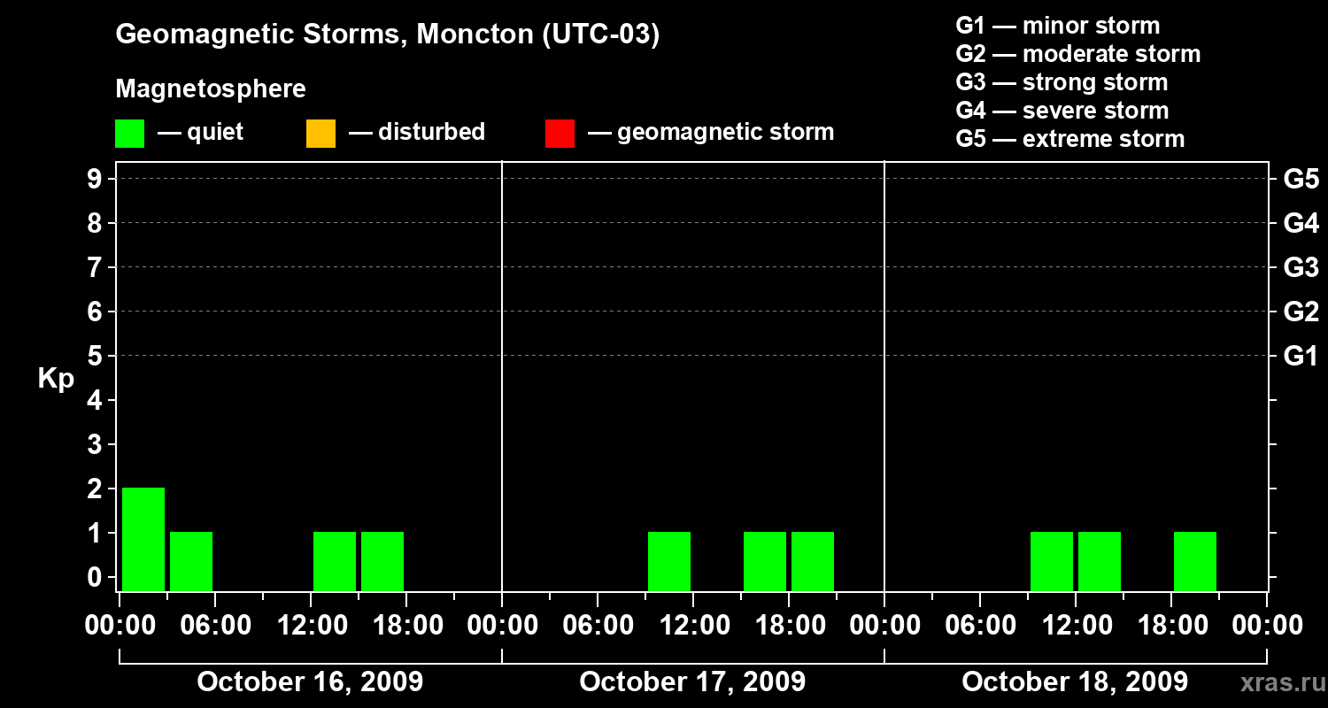 Geomagnetic storms in Moncton on Oct 18, 2009