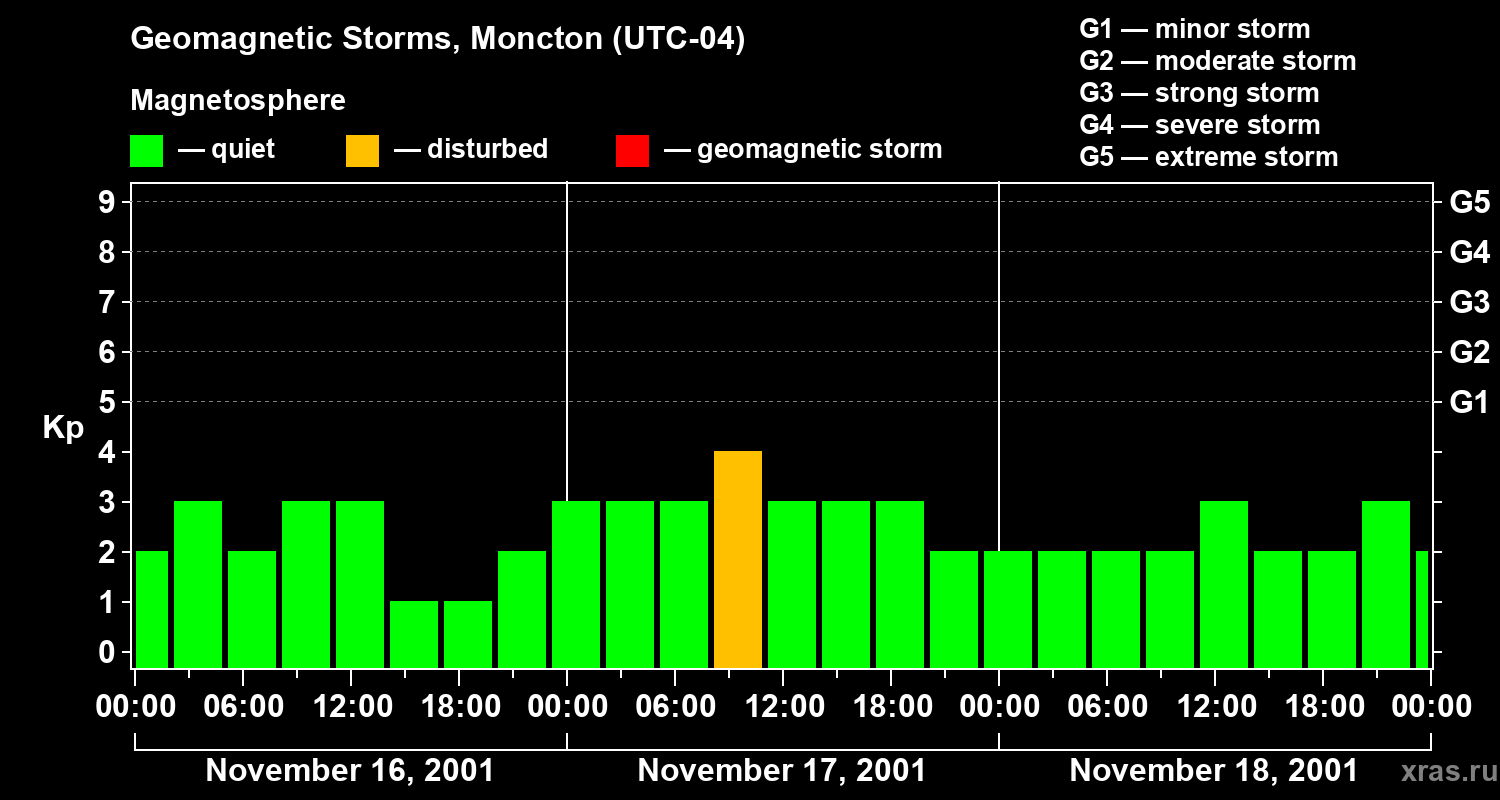 Geomagnetic storms in Moncton on Nov 18, 2001