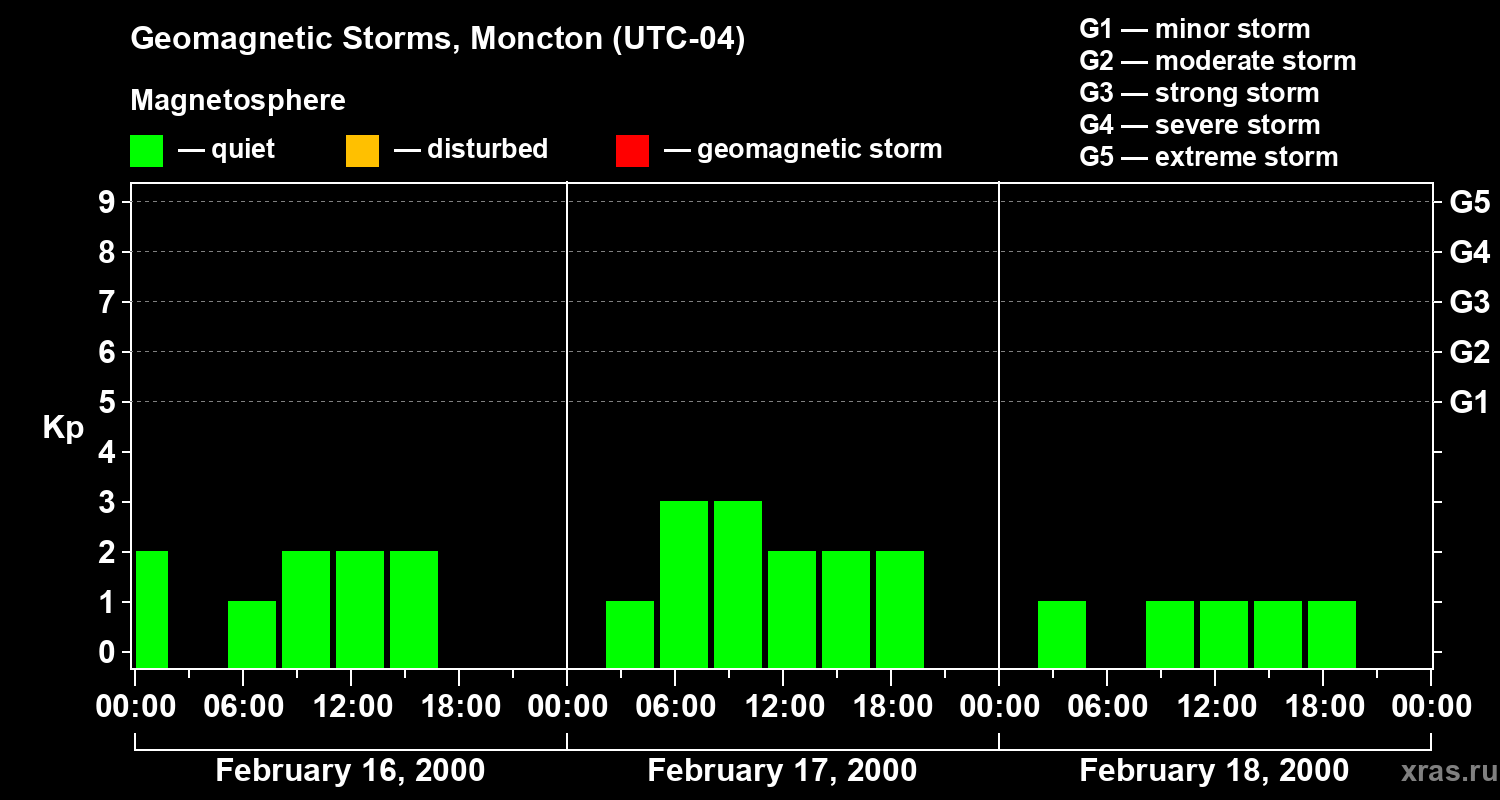 Geomagnetic storms in Moncton on Feb 18, 2000