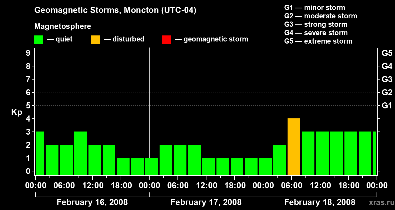 Geomagnetic storms in Moncton — Feb 18, 2008