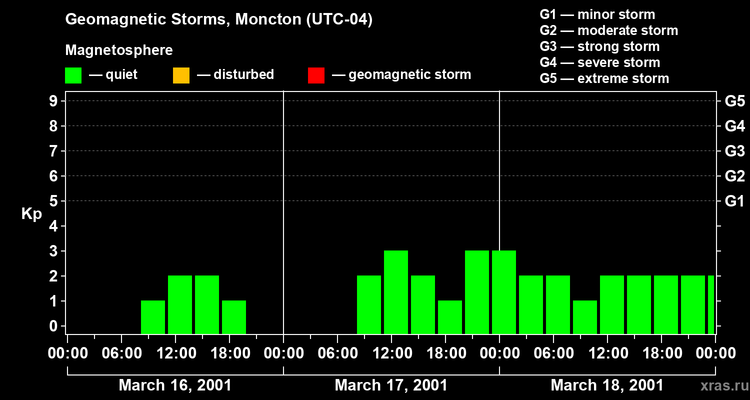 Geomagnetic storms in Moncton in March 2001
