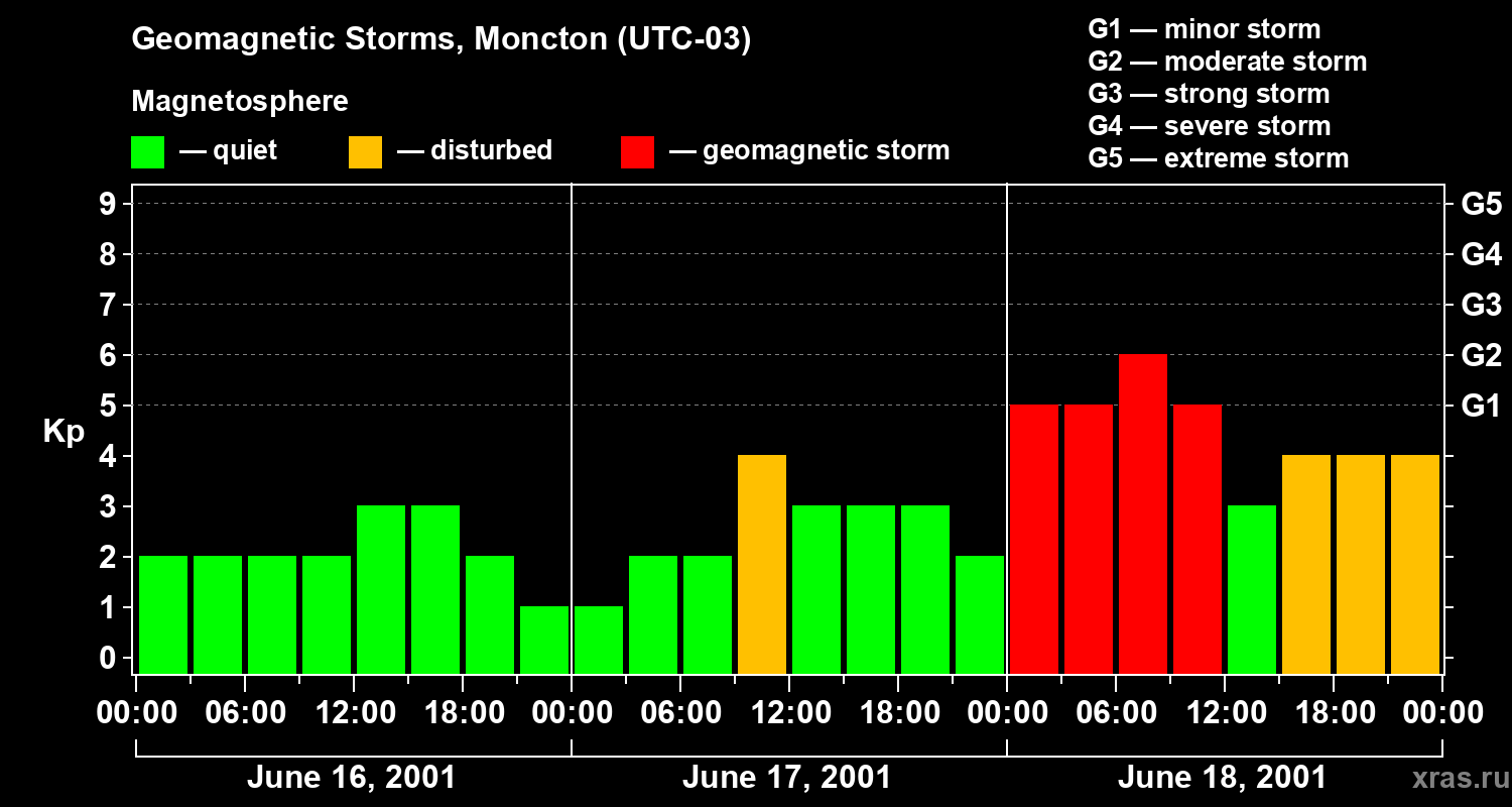 Geomagnetic storms in Moncton on Jun 18, 2001