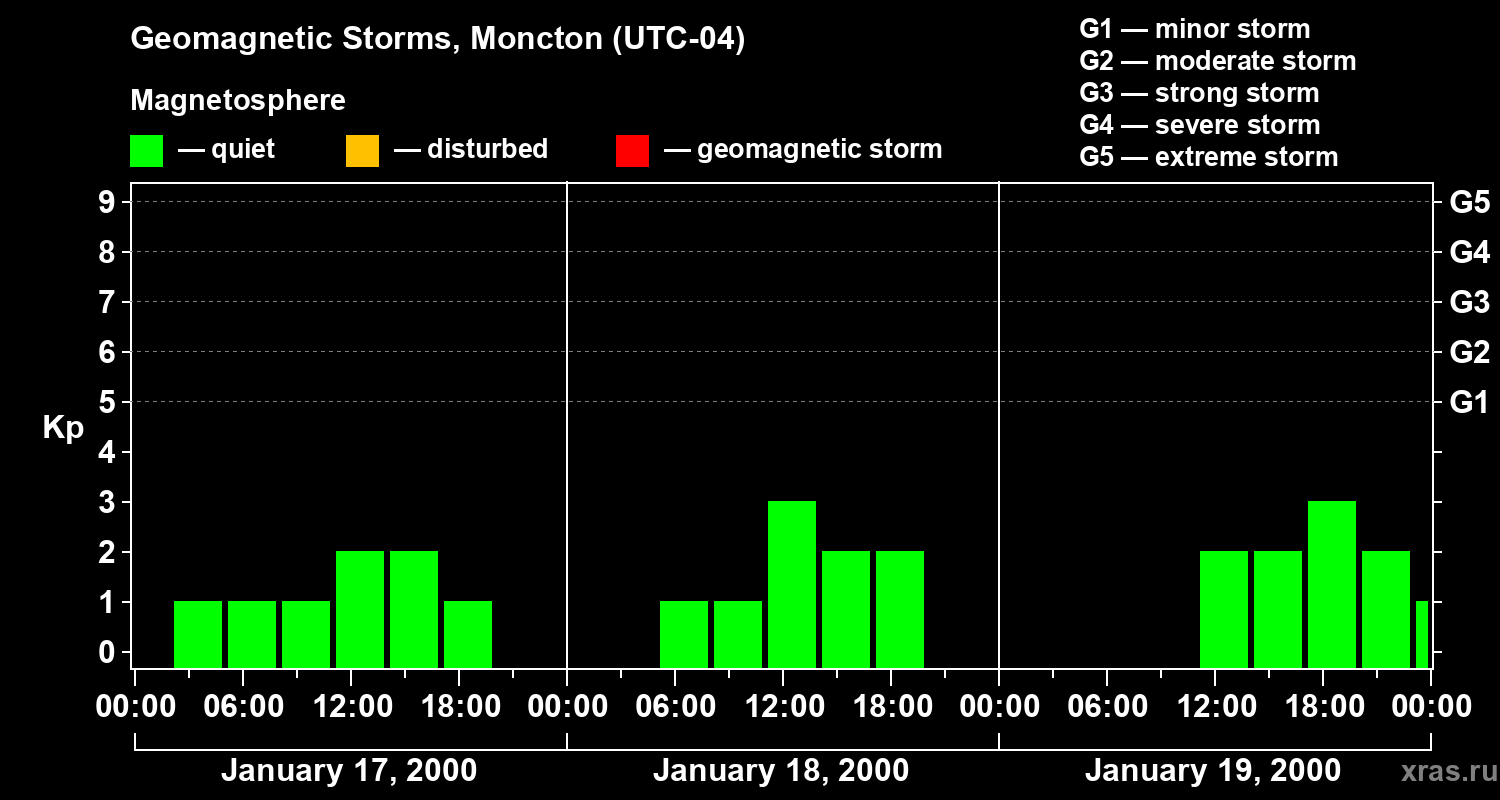 Geomagnetic storms in Moncton on Jan 19, 2000
